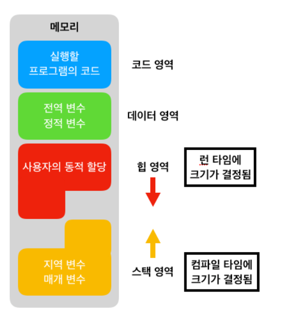 java나 c++에서 new 연산자를 생성하는 경우 또는 class, 참조 변수들도 heap 영역이 차지하게 된다.